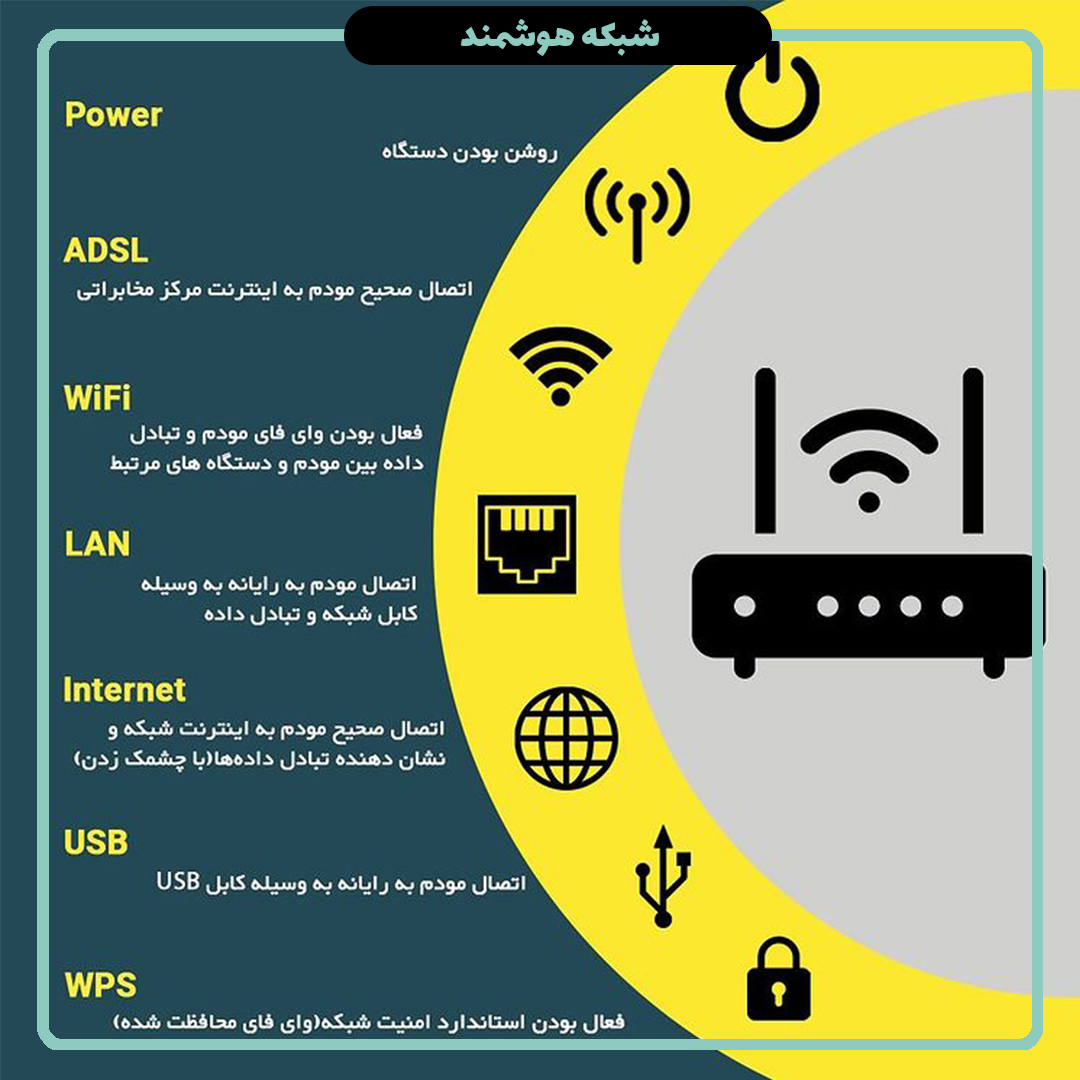 بعضی از مودم ها دارای این چراغ به شکل قفل هستند. wps مخفف عبارتWi-Fi Protected Setup هست که با روشن کردن این چراغ، شما می توانید به راحتی تمام به شبکه مودم متصل شوید.